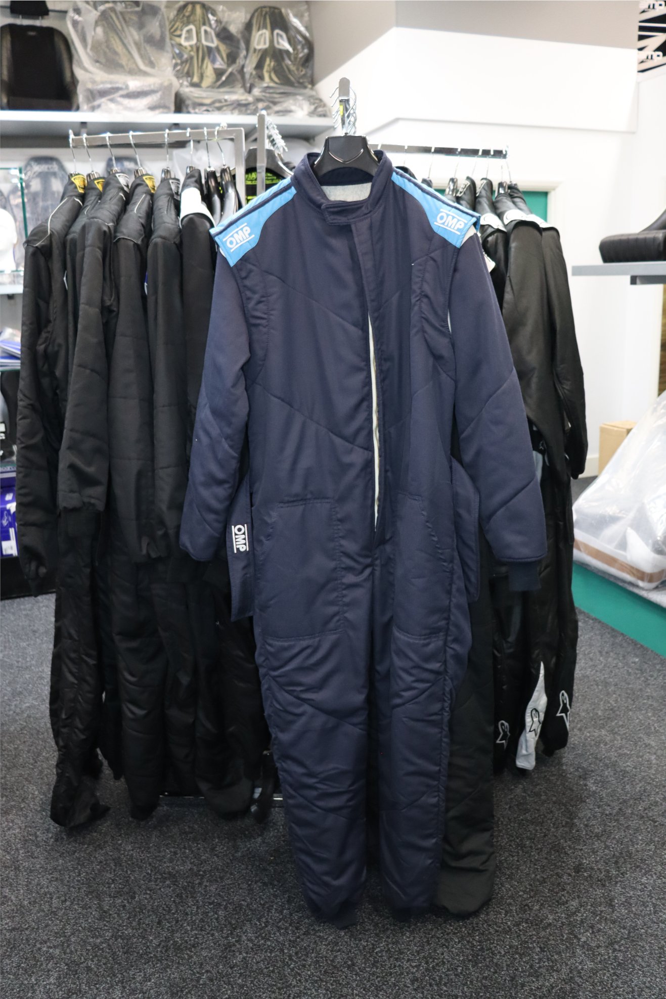 OMP First FIA race suits are our best selling suit. We have these available to try and test in-store.