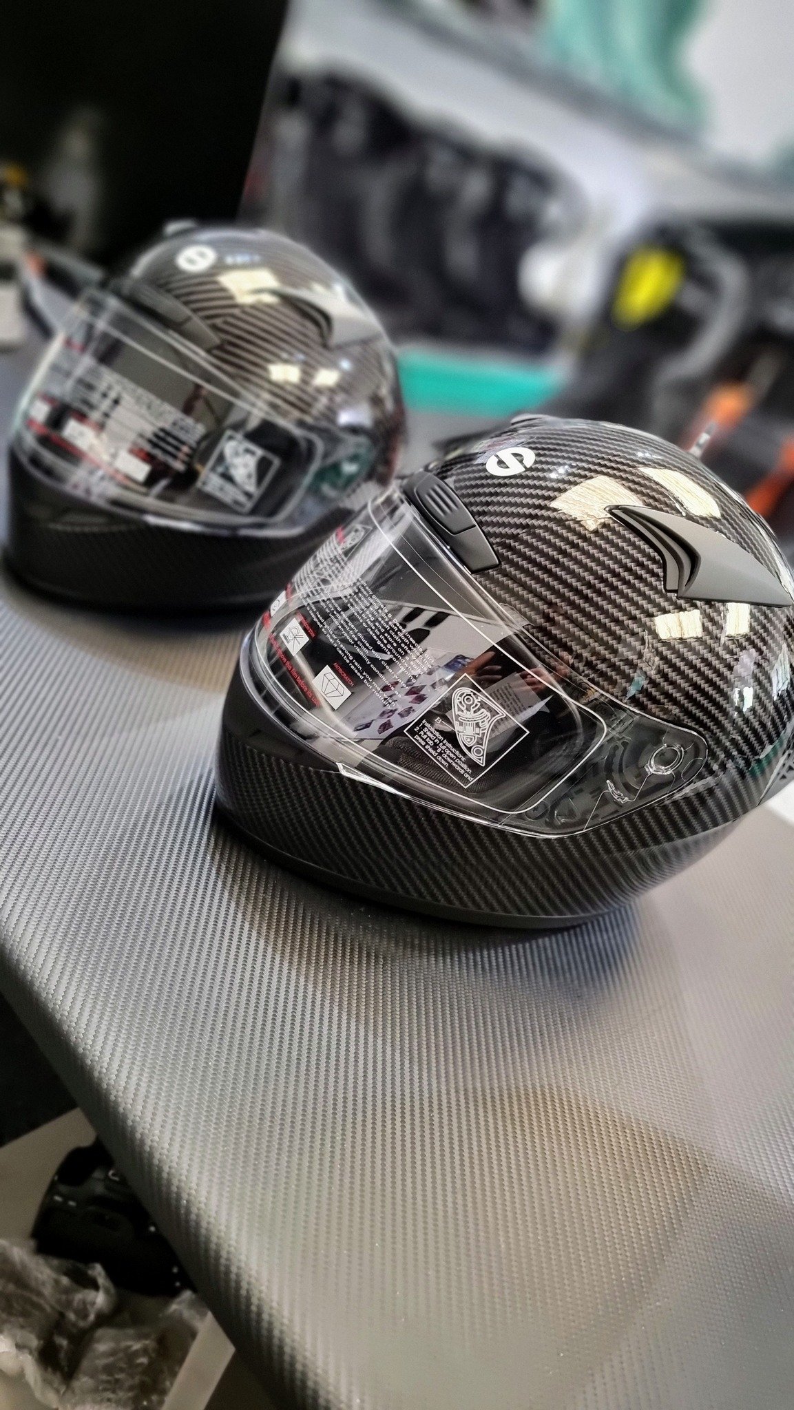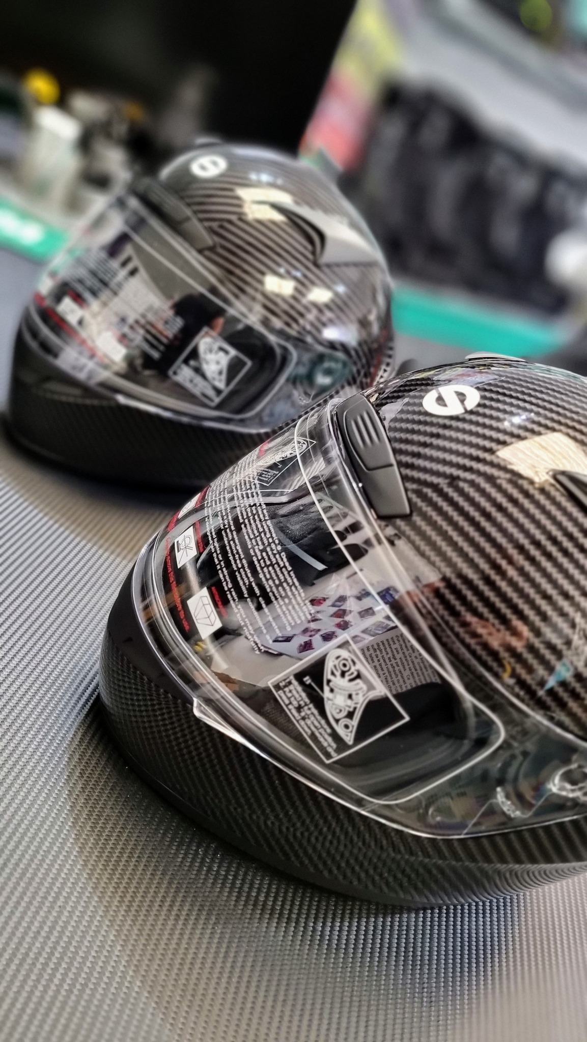 - Carbon effect finish.